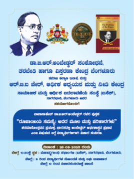 This seminar is supported by the Social Welfare Department, Government of Karnataka and the purpose of the seminar is to commemorate centenary year of publication “The Problem of the Rupee: Its Origin and Its Solution” and also to disseminate Dr B R Ambedkar’s Economic ideas and thoughts among the young college students. It is expected that around 400 students will take part in the seminar.